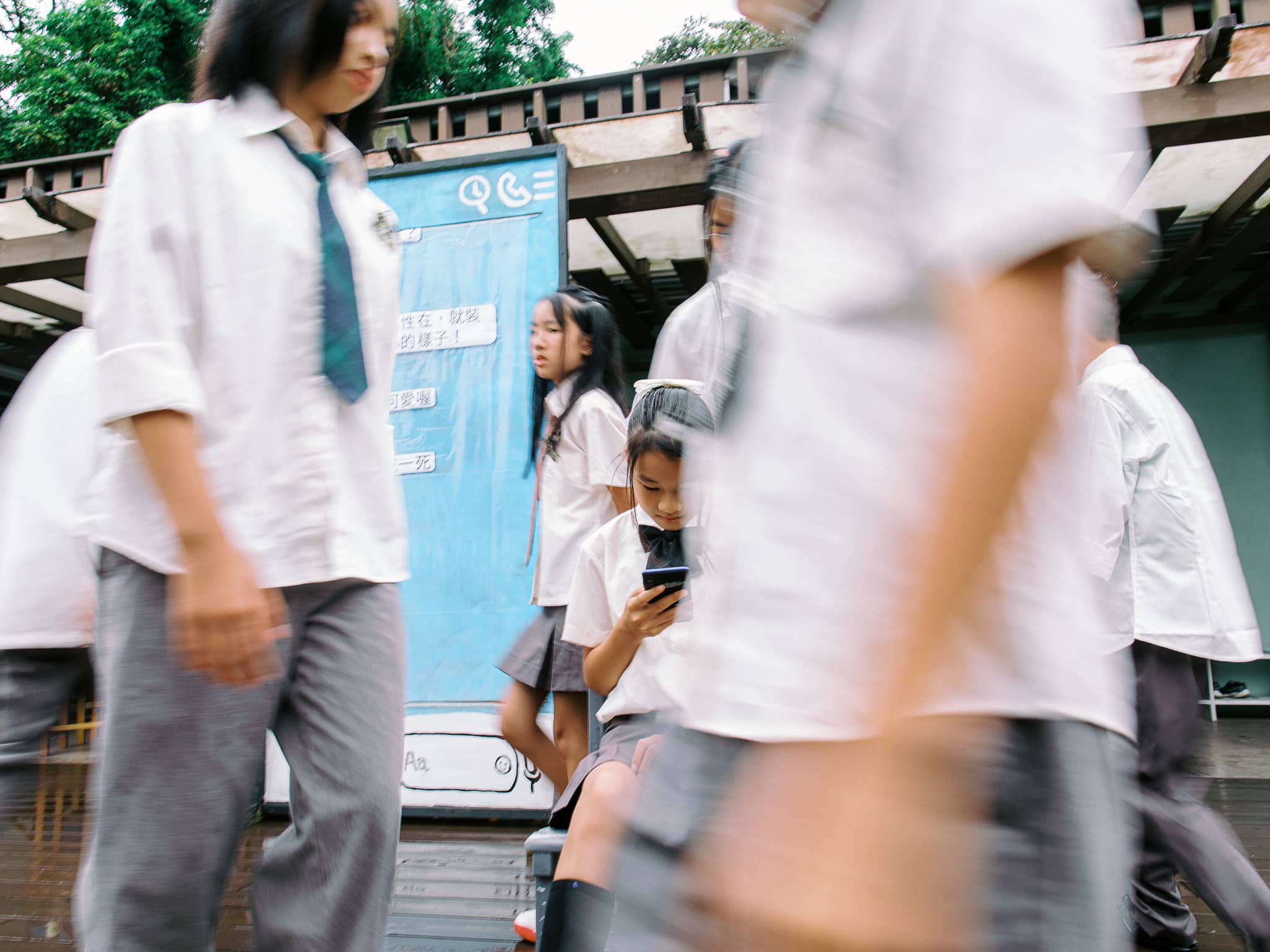 記者試著和學生們攀談,孩子們唯唯諾諾無法表達意見,快閃,離開。