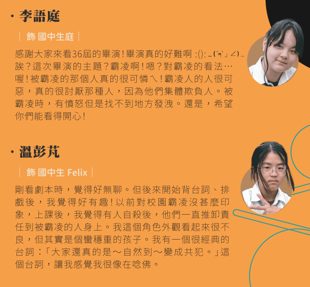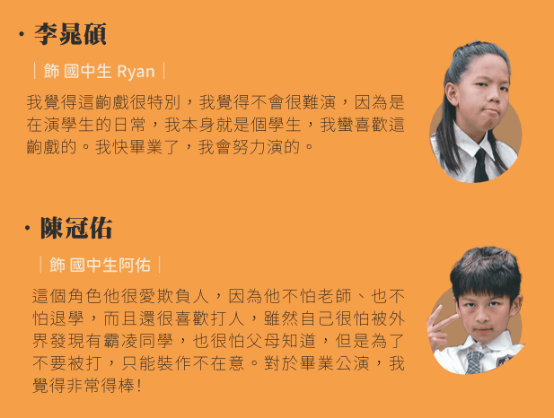 吳杰育、黃苡嘉、廖梵媗、陳冠佑、林渟軒、李語庭、曾若語、陳亮喬、鄭穎謙、李品璇、李晁碩、謝雨翔、吳翊嘉、許嘉珈、温彭芃
