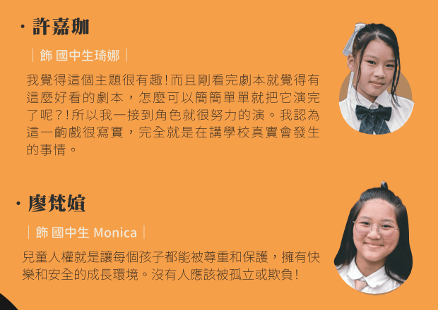 我打從內心讚嘆:孩子怎麼能想到這個!三十幾年來人本致力於推動「建立一個不打小孩的國家」,處理無數的校園申訴案、青少年專案、性騷擾事件,推動法案修改、教學創新、教育改革……不正是為了「兒童人權」焚膏繼晷。曾幾何時,孩子們竟然主動喊起,來演一齣「兒童人權」的戲吧!