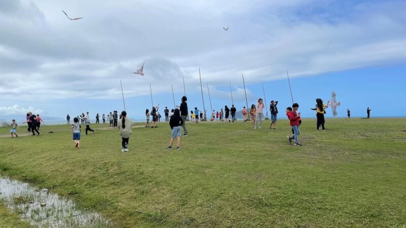 然後,來到潮境公園,這個「海邊垃圾掩埋場」幻化成的「綠地」,我們盤坐其上用餐、溜海螺滑梯、放老鷹風箏⋯⋯;行前戶外教學在白沙灣看到過數量驚人的海邊垃圾,那影像,還在我們的腦海裡盤旋⋯⋯
